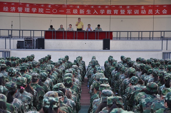 8月25日18:00,经管院于东区操场组织召开了2013级新生教育暨军训动员大会,经管院党委书记高潮、党委副书记赵国年、学办主任高兵以及学办海日罕、徐金鹏、余汉龙老师出席了本次会议,2013级全体新生参加了动员大会。
