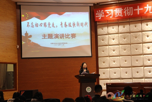 为更好的学习宣传党的十九大精神,深入贯彻习近平新时代中国特色社会主义思想。12月6日晚7:00,经管院于学院123报告厅开展“不忘初心跟党走,青春放歌新时代”主题演讲比赛决赛。我院团委书记海日罕,学生工作办公室老师郭祎天、刘雪佳担任此次比赛评委,MPAcc学员及17级部分学生参加观看此次演讲。