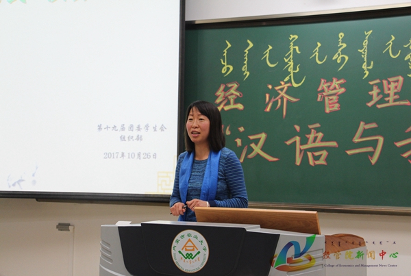 10月26日晚7:00,由经管院团委学生会组织部主办的第十届“汉语与我”演讲比赛在南教115教室成功举办。本次比赛邀请了我院团委书记海日罕,博士杜春玲,学生工作办公室老师祁晓慧、王婷婷、刘雪佳担任评委。学生会主席团成员及各部长担任此次比赛的嘉宾,17级农经3、4班全体同学参加。