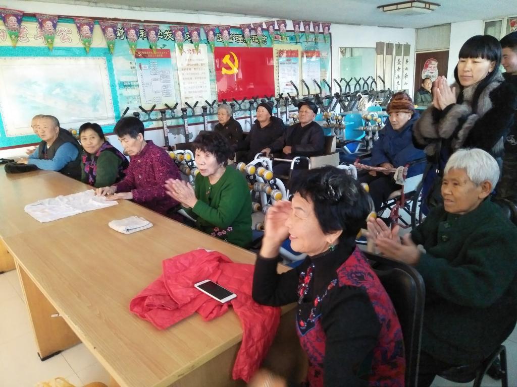 经过两个小时的路程,志愿者到达了松山老年公寓。志愿者与老人们齐聚活动室,为他们进行吉他演唱、蒙古歌曲演唱及舞蹈表演,同学们的精彩表演赢得了老人们的阵阵鼓掌。表演过程中,当演唱到老人熟悉的曲目时,他们也不禁哼唱出声。志愿者还与老人亲切交谈,并且满怀热情地走到老人的身边,听老人们讲故事,场面十分温馨,志愿者们的努力给老人带来了喜悦、幸福和满足。