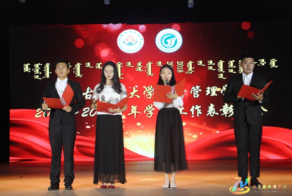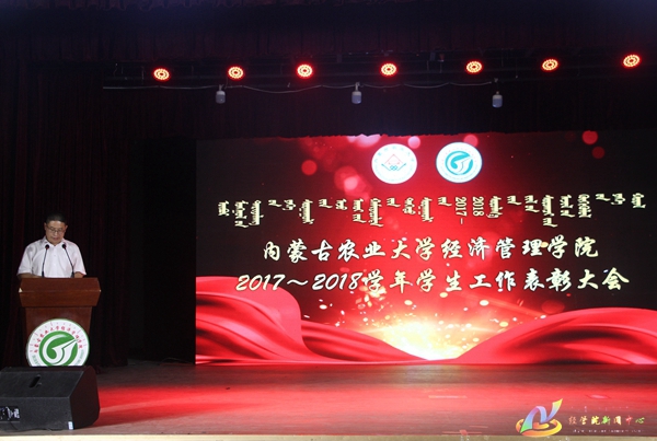 表彰先进,传承作风。6月27日晚7:00,yl23455永利官网2017-2018学年学生工作表彰大会于东区礼堂隆重举行。我院党委书记赵国年,院长乔光华,党委副书记王智广,副院长宝音都仍,二级辅导员王瑞梅,关工委副秘书长张梅令,博士生导师、2016级金融双语班主任赵元凤教授,工商管理系主任、2017级工商管理一班班主任郑喜喜,学生工作办公室副主任徐金鹏,学生工作办公室苏宁巴乐、王婷婷、刘雪佳老师莅临本次表彰大会。