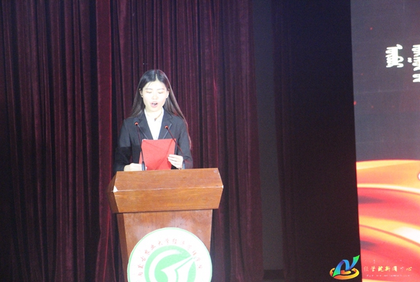 在庄严的国歌声中,颁奖仪式正式开始。院长乔光华宣布2017-2018年度学生工作表彰文件决定。此次表彰分为崇学篇、尚行篇、励能篇三个篇章,共包括三好学生、学习进步个人奖、优秀班集体、优秀新闻工作者、优秀社团、创新创业优秀团队、突出贡献奖等十四个奖项。由我院到场领导依次上台为获奖同学颁奖并合影留念。继第二篇章表彰过后,我院杨晓彤,丁建等四位同学声情并茂的朗诵《我的南方和北方》,将现场气氛推向高潮。用汗水灌溉学生工作的田野,用肩膀扛起了一个集体奋进的旗帜。表彰结束后,我院2015级农林经济管理一班张月彬同学上台发言,她首先向学院以及老师同学们表达衷心的感谢,她表示希望我们每一个人能够脚踏实地,以一颗平常心,在做好份内工作的同时不断地提升自己,把握机会创造属于自己的价值。