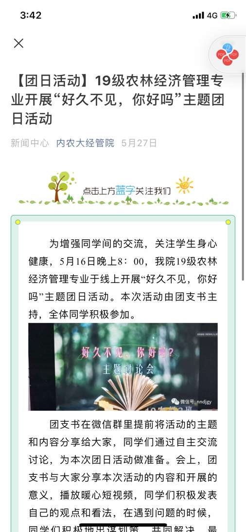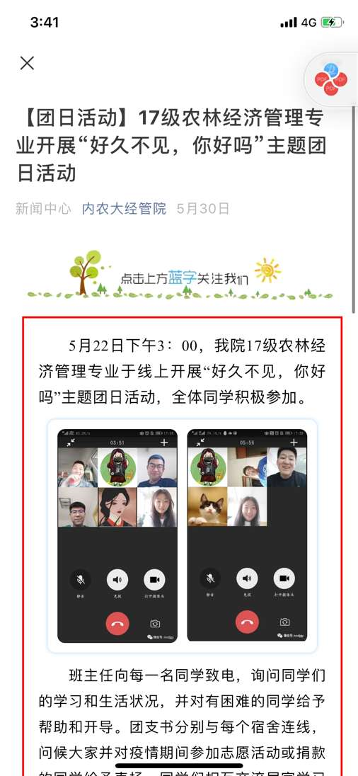 自活动开展以来,我院学生积极参与,累计共收到视频类、摄影类、书画类、文字类作品259个,于经管院公众号推送相关报道44篇,总阅读量达8692次。我院各团支部积极组织班级同学开展“好久不见,你好吗”主题团日活动,共调动我院2045名同学参加到此次活动中,并发表自己的心得体会。本次主题团日活动有利于了解我院学子的思想动态,疏导大家的不良情绪,让同学们感受到学校和老师的关心。好久不见,你好吗?
