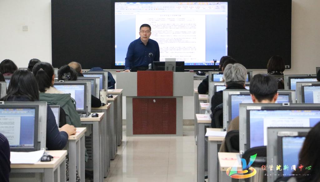 培训会上,张建成副院长围绕课程教学大纲如何与人才培养方案精准对接,以及教学大纲的内容和格式设定这两方面问题向参会教师进行了说明。他以会计学、工商管理与农林经济管理三个专业的培养方案为例,阐述了培养方案课程群里的各门课程如何精准而全面地实现培养方案中的培养目标。之后,又以《微观经济学》课程教学大纲为例,要求老师们在修订教学大纲时注重将思政元素融入课程内容中,同时,要明确课程教学目标。最后,他对教学大纲编写过程中易混易错的地方做出了说明,对教学大纲各部分的格式作出了统一的规范,对编写进度和编写质量提出了明确的要求。