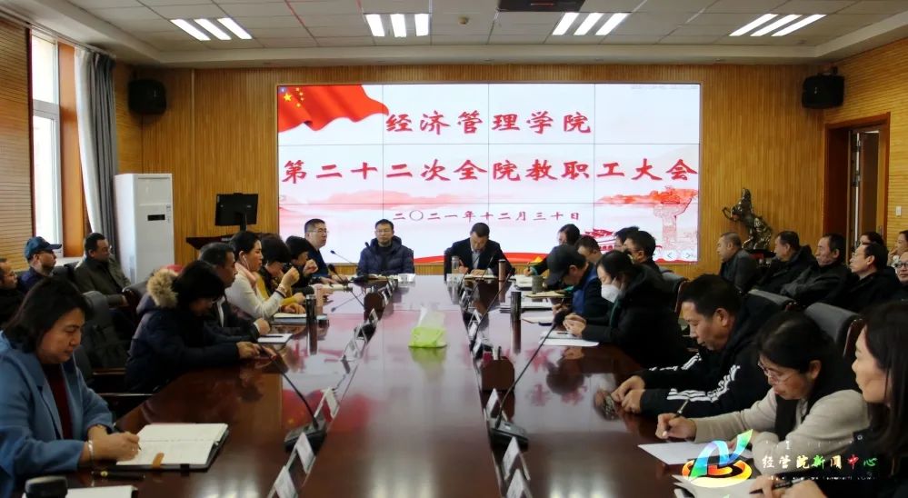 12月30日下午3:00,我院于经管院519会议室召开2021年第二十二次全院教职工大会,学院党委书记王智广主持会议,全体教职工参会。