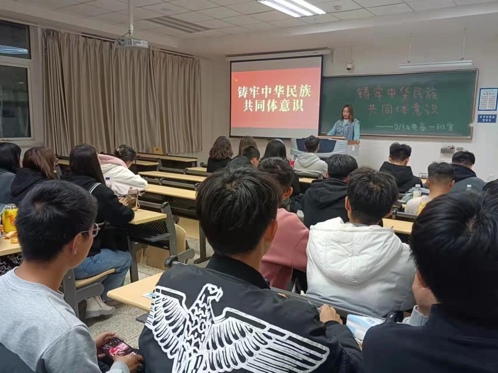 活动中,各班团支书通过观看视频、PPT讲解等方式,深化同学们对铸牢中华民族共同体意识的认知,引导同学们积极将“爱国情、强国志、报国行”融入实现中华民族伟大复兴的奋斗征程之中,并围绕主题开展民族团结故事讲述、知识竞赛等活动,进一步坚定同学们维护民族团结的信念,成为铸牢中华民族共同体意识坚定的贡献者、推动者。