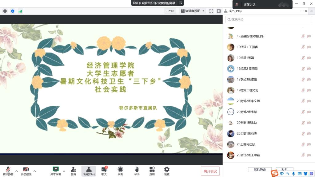 为巩固暑期社会实践成果,更好地传递志愿者服务精神,引领同学们喜迎二十大、永远跟党走、奋进新征程,11月22日,我院于线上开展2022年暑期社会实践分享交流暨评比表彰会,学办主任徐金鹏、分团委书记白灵、学办副主任苏宁巴乐、辅导员李文政、李月宇、马瑞出席会议,实践队队员积极参加。