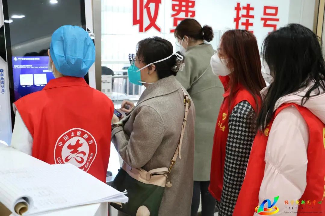 活动中,志愿者们在医护人员的带领和引导下,以饱满的精神状态和满腔的热情积极参与到为老年患者提供电子挂号服务建议、进行精准科室位置索引、陪伴待就医的小患者、帮扶腿脚不便的患者、提供文明疏导、答疑等工作中。同学们在服务中主动发现患者的困难,积极帮助患者解决就医过程中遇到的问题,以实际行动践行雷锋精神,用青春活力与赤子之心增添温暖。