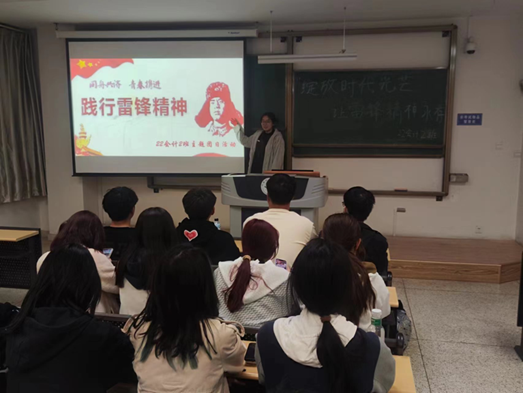 为贯彻落实习近平总书记对深入开展学雷锋活动的重要指示精神,深刻把握雷锋精神的时代内涵,深化拓展新时代学雷锋活动。3月16日,我院2022级会计2班于南教313开展“绽放时代光芒,让雷锋精神永续”主题团日活动,全班同学积极参加。