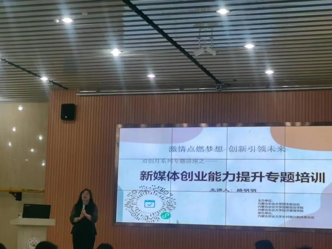 为强化高校大学生创新实践能力,提高同学们的职业素养和就业创业竞争力,4月17日晚,我院于创新创业学院三楼大厅举办新媒体创业能力提升专题培训,此次培训由内蒙古农业大学招生就业处(创新创业学院)、yl23455永利官网联合主办,内蒙古农业大学乡村振兴数商团学生社团承办。特邀自治区首个网络创业(直播)试点班教师路明明主讲,部分师生代表积极参加。