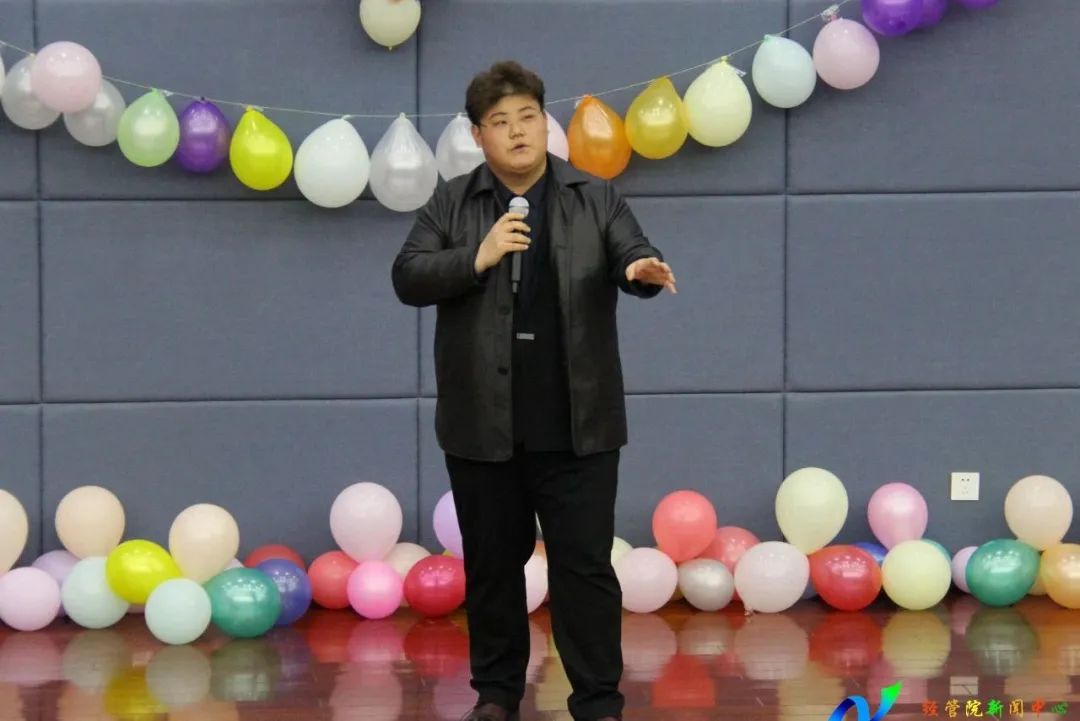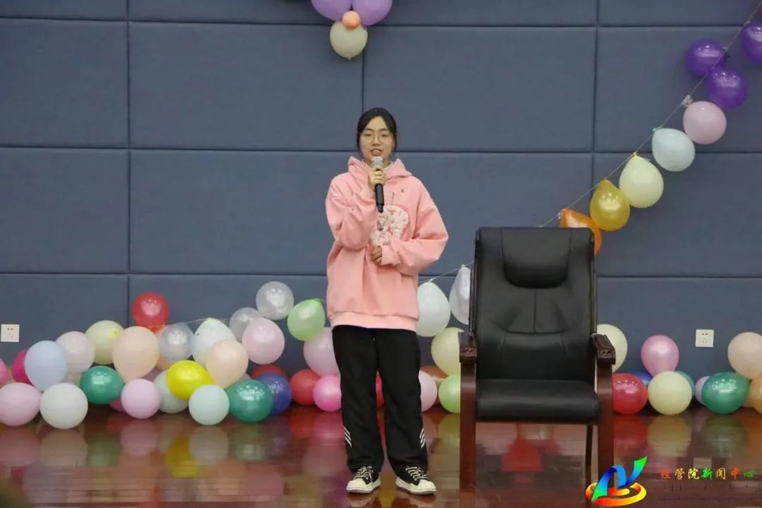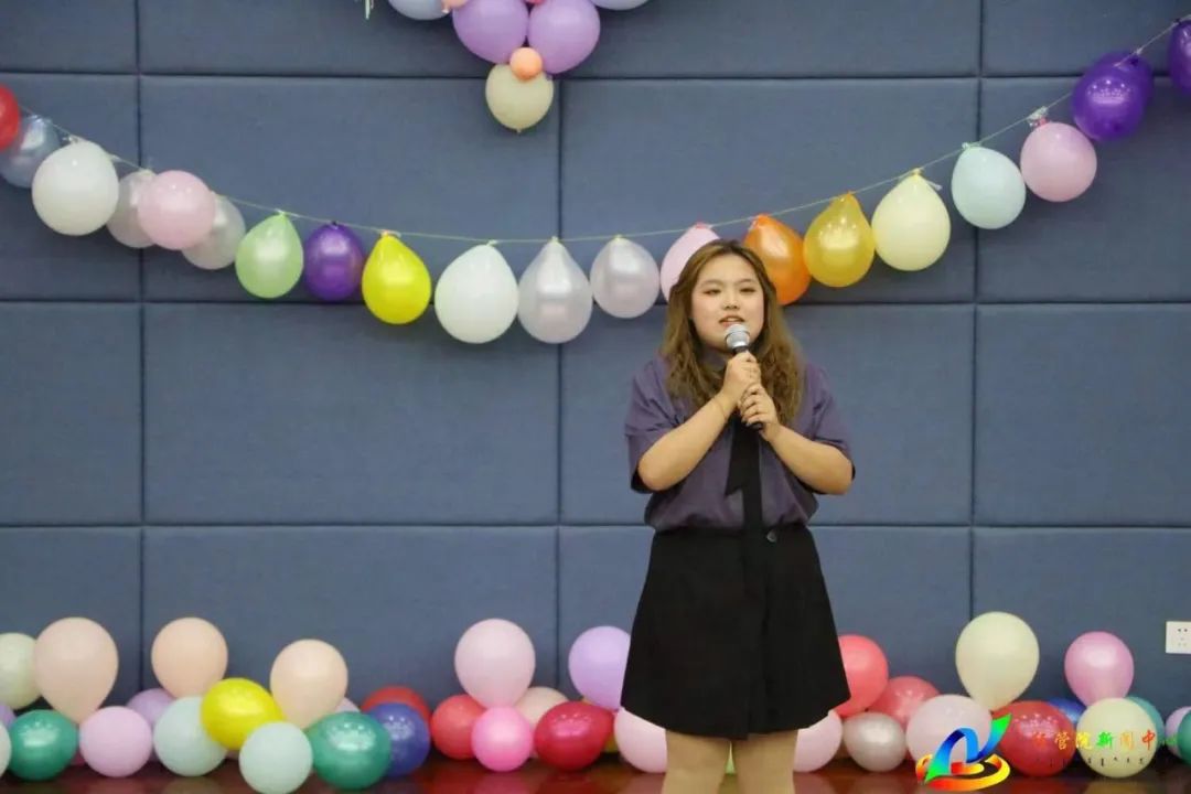 比赛历时19天,50位参赛选手经过层层评比,共11位选手入围决赛。选手们紧密围绕“横扫内耗,做回自己”这一主题,结合自身生活经历与社会实时热点,分享自己对“精神内耗”的独特见解。台上,同学们以幽默的语言、清晰的思路、饱满的精神状态从生活、学习、友情等多个角度进行现场脱口秀演说,分享有趣经历,讲述青春故事。整场脱口秀风格各异、金句不断,观众和评委积极配合,欢笑之余,也思考着其中包含的深层意义。其中,由殷岳同学带来的《漫谈精神内耗》用贴切生活的实例解释“精神内耗”这一行为,以诙谐幽默的语言和丰富生动的神态表达了“精神内耗”时代下年轻人的看法与应对方法。大赛中穿插的歌曲节目、舞蹈表演和配音短剧为现场增添了色彩,现场掌声不断、欢笑不绝。李月宇老师对活动做出总结,希望更多同学参与到脱口秀表演中,在提高语言表达能力和临场应变能力的同时增强自信心,在生活中拒绝过度焦虑,勇于接纳自己,用理性的思维思考问题,以乐观的心态面对生活。