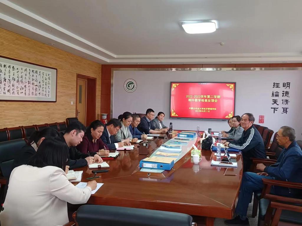 下午,校检查组四位老师及教师发展与教学评价中心的王翠玲老师在学院552会议室对我院期中教学检查结果进行了反馈。学院党委书记许驭、副书记斯日古楞、副院长张建成、6位系主任、教学办主任认真聆听了校教学检查组的反馈意见。校检查组对我院专业建设、教风学风建设、师德师风建设、质量保障、基层教学组织作用、青年教师培养方面的工作成绩给予肯定,对教学运行检查、教研活动记录、教学检查评价等方面提出了改进意见及建议。许驭书记代表学院对学校检查组提出的宝贵意见表示感谢,并表示学院将继续巩固教学管理工作中的成果,进一步规范教学管理工作,抓紧时间改进不足,为迎接新一轮的审核评估做好准备。张建成副院长首先对各位督导的辛勤付出及对经管院的鞭策表示感谢,并表示后续将结合检查组老师的反馈意见,在下一步教学管理工作中认真落实整改意见,更好地推进本科教学管理工作。