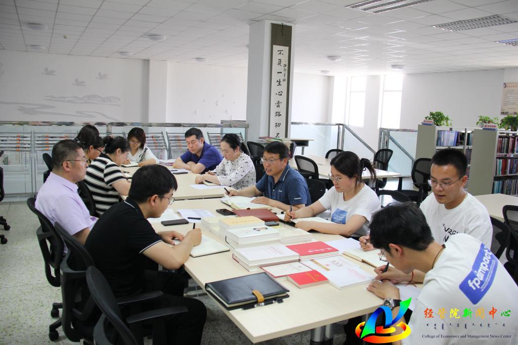 6月16日下午5:00,学院党委理论学习中心组于经管院二楼主题教育读书角召开学院党委理论学习中心组(扩大)学习研讨会。学院党委委员、师生党支部书记参加会议。