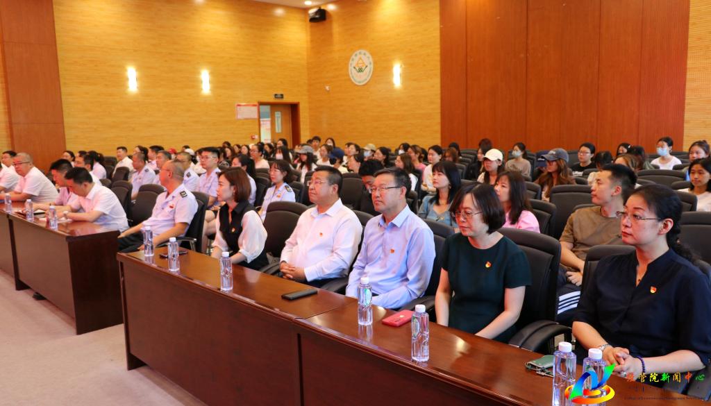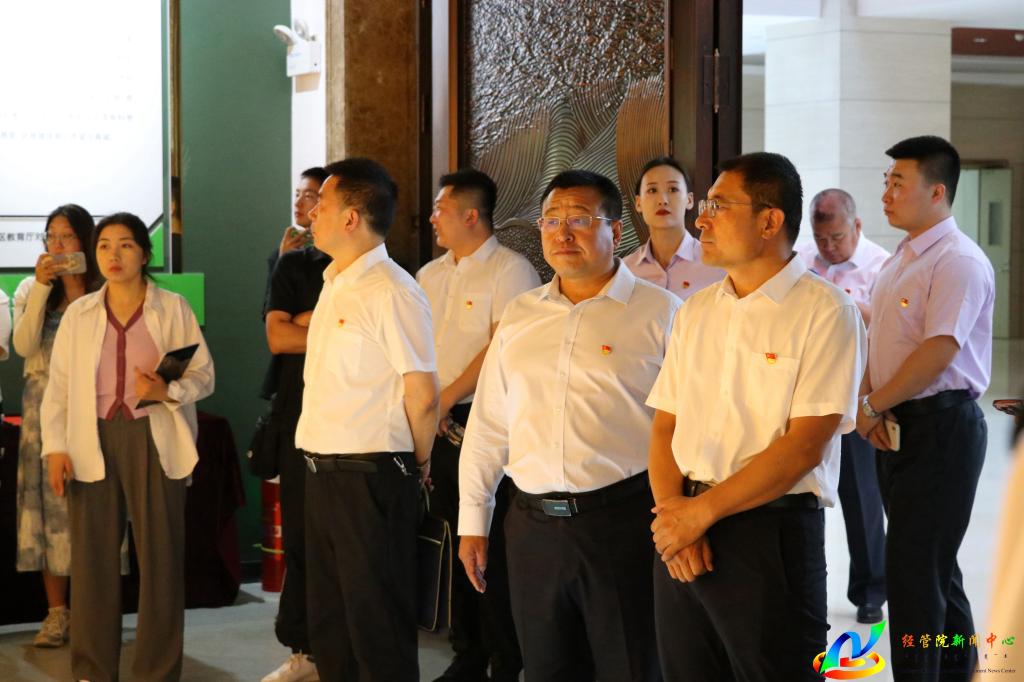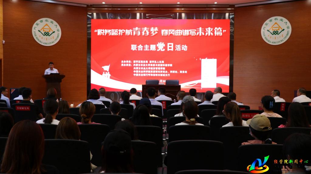 6月30日上午9:00,学院与草原与资源环境学院、赛罕区税务局、赛罕区人社局、中国农业科学院草原研究所、中国农业银行呼和浩特新城支行联合开展“税务蓝护航青春梦 春风曲谱写未来篇”主题党日活动,赛罕区税务局党委书记、局长张震男,赛罕区税务局党委委员、副局长师银河,赛罕区人社局党支部书记、局长张志强,赛罕区人社局副局长张永军,中国农业科学院草原研究所党委办公室主任李鹏,中国农业科学院草原研究所财务管理处副处长夏燕,中国农业银行呼和浩特分行资深专员赵喜鹤,中国农业银行呼和浩特分行机构部总经理包挺,中国农业银行呼和浩特新城支行行长郭树君,中国农业银行呼和浩特新城支行副行长伊利峰,我校计划财务处处长李立峰,草原与资源环境学院党委副书记刘漫中,学院党委书记许驭,院长乔光华,党委副书记斯日古楞,以及六家单位的党员同志参加主题党日活动。