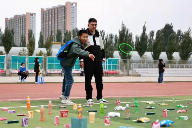 在趣味运动会中,比赛共分为四人组、两人组和个人组三部分,四人组比赛项目是两人三足+螃蟹走跑+搬石头过河,两人组比赛项目是背对背拥爆,个人组是由单人跳绳+夹乒乓球、盲人摸象和足式保龄球三个项目组成。参赛的同学们竭尽全力、争分夺秒,比赛现场掌声不断。赛后,同学们拿到完赛券还可以进行套圈活动,赢得套中的奖品。