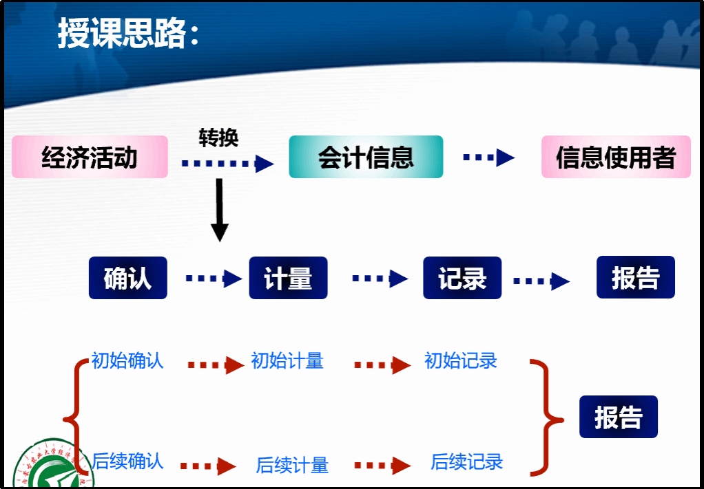 如何实现传统课堂教学与线上教学的有效衔接,最大程度实现教育教学目标向学生学习收获之间的转化,在张心灵教授、张建成院长、石芳主任、范文娟副主任、陶华老师、郭慧老师、许黎莉老师的积极研讨下,以许黎莉老师讲授的《中级财务会计1》课程为试点,通过思政赋能、目标赋能、专业赋能、技术赋能、数字赋能探索了以学生“学”为中心的“课程思政”与《中级财务会计1》线上教育教学融合模式。