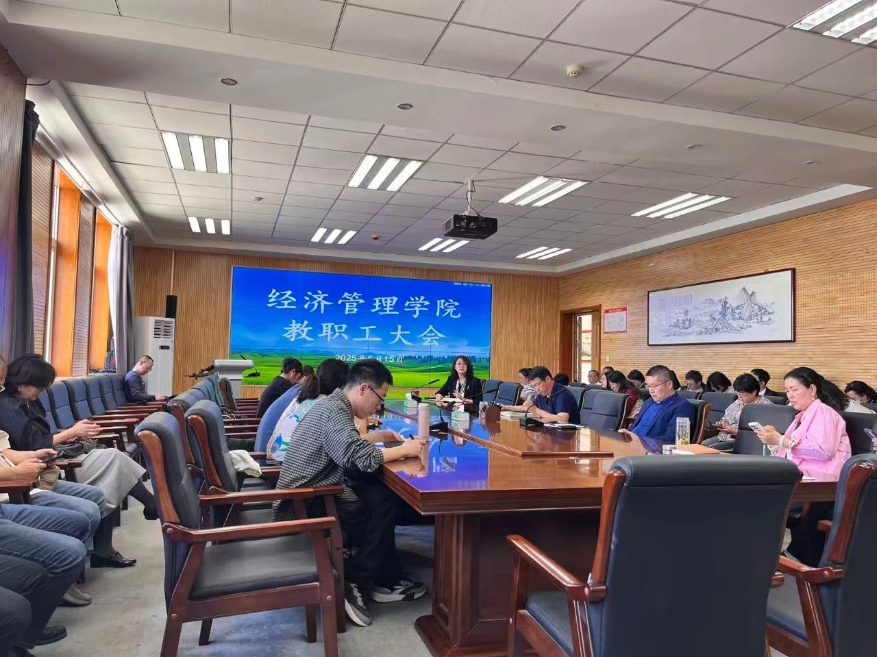 5月15日下午2:30,于学院519会议室召开全院教职工大会,许驭同志主持会议。