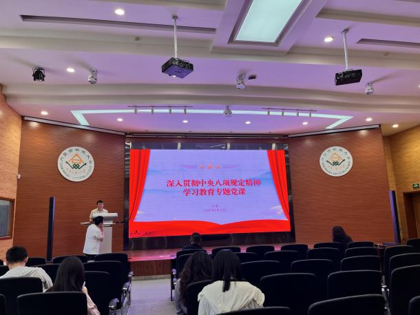 6月12日下午4:00,许驭同志于经管院123报告厅以《深入贯彻中央八项规定精神学习教育》为题讲授专题党课。围绕习近平总书记关于加强党的作风建设的重要论述、违反中央八项规定精神的危害、贯彻落实中央八项规定精神的成效经验,推动改进作风的实际举措等,结合具体案例进一步解读开展深入贯彻中央八项规定精神学习教育的重大意义。强调全体师生党员要真正把中央八项规定精神内化于心、外化于行,扎实推进作风建设走深走实,推动学习教育见成效,为学院各项事业的高质量发展提供坚强的纪律保障。
