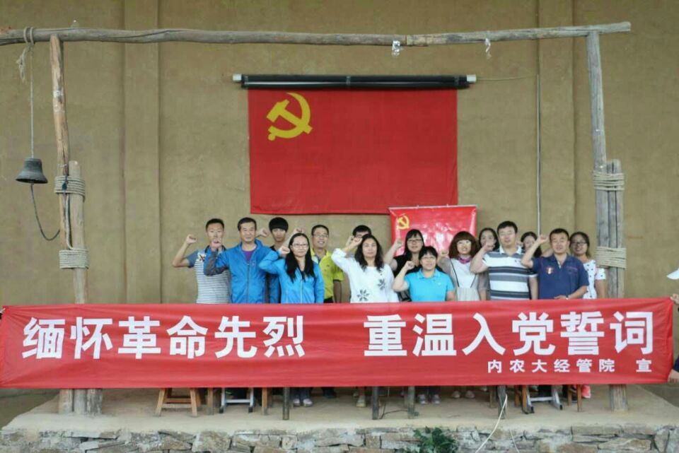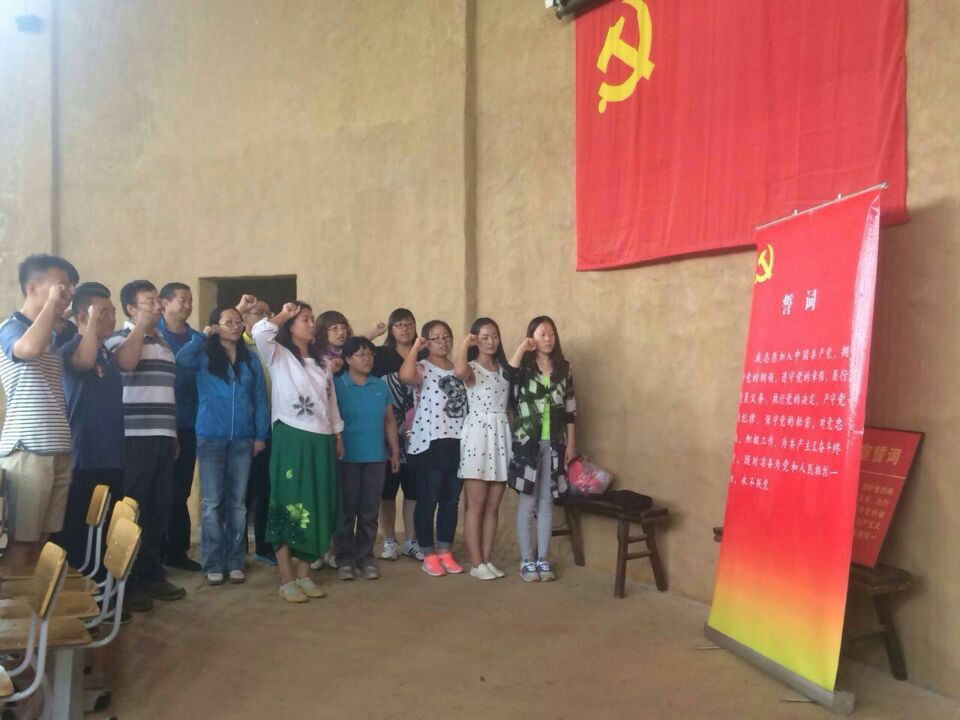 参观完革命遗址遗物、听完革命感人事迹后,在石芳老师的带领下,各位党员面对鲜红的党旗,庄严地举起右手,重温了入党誓词。随着悦耳和洪亮的誓词“我志愿加入中国共产党……为共产主义事业而奋斗终身……”在耳畔回响,更加坚定了各位党员的理想信念。重温入党誓言是一种回顾,更是一种激励,激发自己的工作热情,促使自己牢牢记住在党旗前的誓言,将共产党员的先锋模范作用体现到具体工作中,以实际行动和优异的成绩向党的生日献礼。中午进行了短暂的休息和简谱的用餐后,老师和同学们进行了爬山活动,活动最后老师和学生们在展览馆前合影留念。