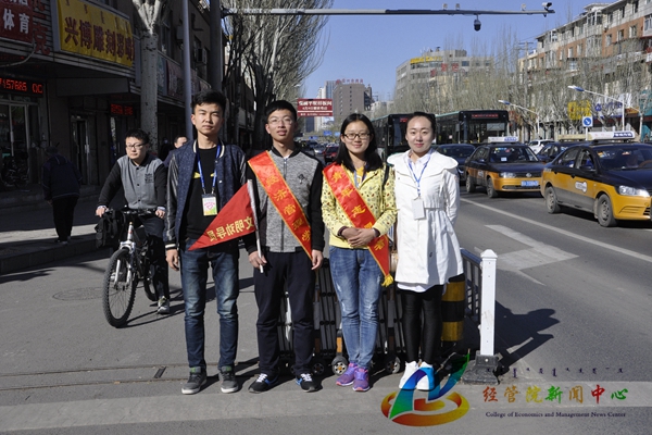 4月16日上午8:00,由经管院学研会组织的志愿者在驰誉路口进行交通协警志愿活动。本次活动旨在弘扬雷锋精神,展现当代大学生风采。我院近50位志愿者参加了活动。