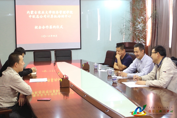 4月21日上午,经管院与中软总公司计算机培训中心合作签约仪式在我院五楼会议室举行。我院党委书记赵国年,院长乔光华,中软总公司培训部总经理郑豪,党委副书记王智广,内蒙古中软培训中心赵总经理以及我院就业办主任徐金鹏出席本次签约仪式。