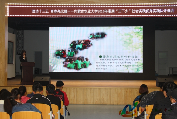 由我校承办的以建功十三五 青春亮北疆——内蒙古农业大学2016年暑期“三下乡”为主题的社会优秀实践队评选会,于10月15日晚7:00在东区礼堂正式开始。内蒙古农业大学团委副书记李伟威,内蒙古医科大学团委宣传部部长王彦,内蒙古工业大学团委办公室主任张宇峰,内蒙古工业大学团委宣传部部长武新春,内蒙古师范大学团委组织部部长刘正鼎,内蒙古农业大学团委组织部部长徐付担任此次活动评委,我校18个代表队及各院观众参加活动。我校各院代表队的积极参与,充分展现了当代大学生的青春活力,极大提高了活动的影响力。