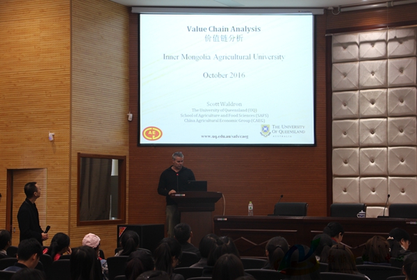 10月17日下午4:00,我院于经管楼123学术报告厅举行第107期经管讲坛。本次讲座邀请了昆士兰大学农村自然资源管理系统学院中国农业经济研究小组成员、国际农业经济学家协会理事、澳大利亚中国经济研究协会理事Dr.Scott Waldron到场,为我院2015级MPAcc学生及各专业、各年级研究生作了以《Understanding and doing Value Chain Analysis for agricultural products》为主题的学术讲座。