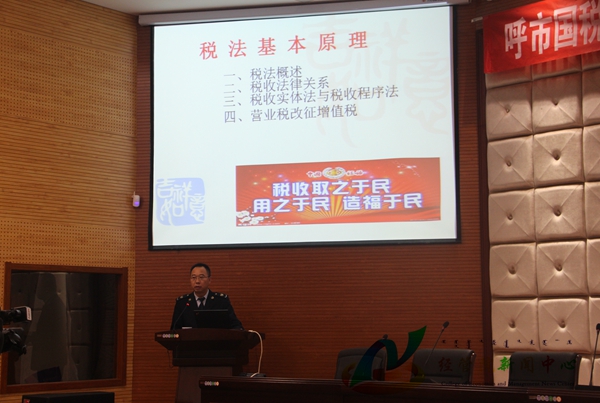为贯彻落实中共中央深化税收征管体制改革,进一步推进税法普及教育,加强青年税法宣传教育,增强“未来纳税人”的诚信纳税意识。10月20日下午4:00,我院于经管院123会议室隆重举行第一百零八期经管讲坛。本次讲座邀请到呼市国税局纳税服务科科长李鹏飞,征收管理科科长马利,呼市国税直属分局局长王俊生等领导到场。我院经济系、会计系部分学生参加并聆听了此次讲座,学院党委副书记王智广主持了此次讲座。