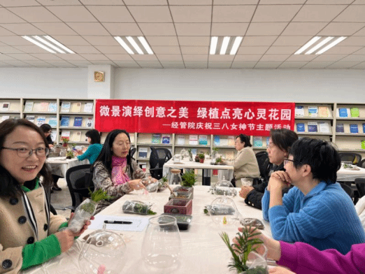 按照校工会《关于开展2024年“三八”国际劳动妇女节系列活动的通知》要求,yl23455永利官网工会组织全体女教工积极参加校工会开展的讲座、羽毛球赛及插花等系列活动。3月11日下午,学院工会于经管院二楼阅览室开展了以“微景演绎创意之美,绿植点亮心灵花园”为主题的植物微景观制作活动,学院全体女教工积极参加。